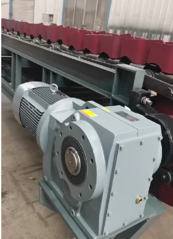 鏈板機由頭部機架、頭部護罩、主動鏈輪組、輸料裝置、中部機架、尾部機架、改向鏈輪組,鏈板托輪組和驅動裝置組成。
