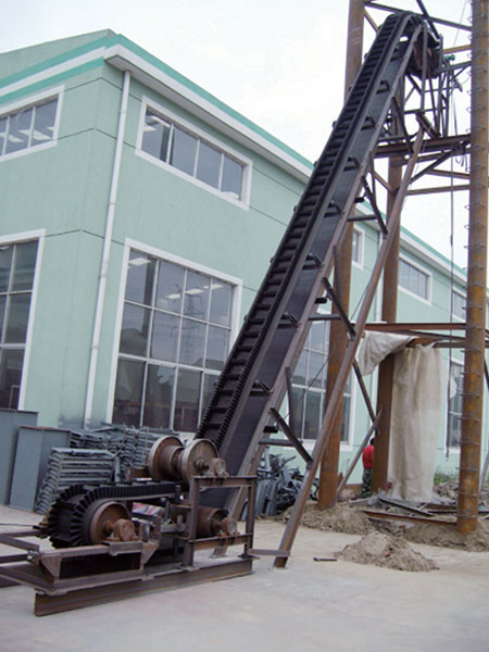 波狀擋邊輸送帶:在輸送機中起曳引和承載作用。波狀擋邊、橫隔板和基帶形成了輸送物料的"閘"形容器,從而實現大傾角輸送。